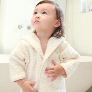 バスローブはお風呂上がりにさっと赤ちゃんに着せられ、その間にママが身支度することができるので日常使いできる大変便利な贈り物に。